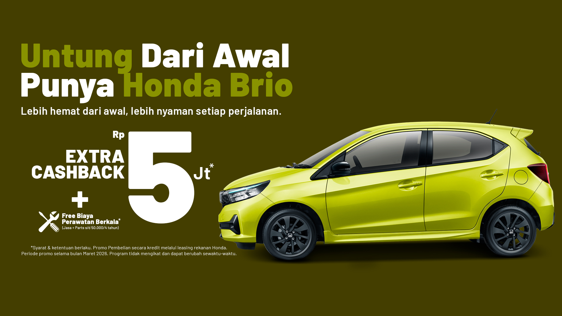Harga yang tertera adalah harga rekomendasi OTR Jakarta dan kepemilikan mobil pertama, dan dapat berubah sewaktu-waktu tanpa pemberitahuan sebelumnya.